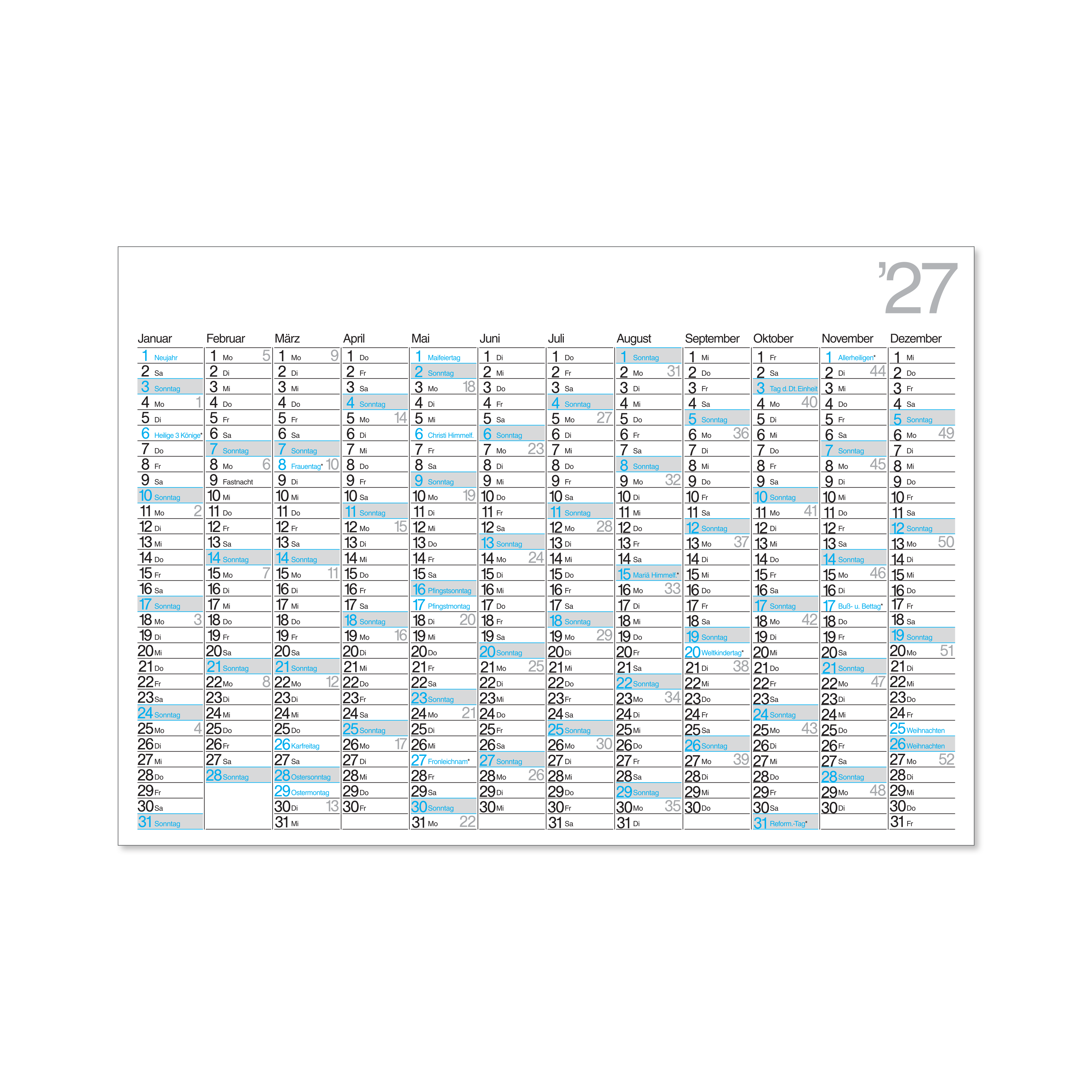 Plakatkalender 12 Monate – Deutsche Ausführung - 98 x 68,5 cm für das Jahr 2027